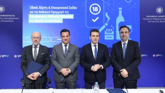 Οι Υπουργοί Υγείας Άδωνις Γεωργιάδης, Ψηφιακής Διακυβέρνησης & Τεχνητής Νοημοσύνης Δημήτρης Παπαστεργίου, Προστασίας του Πολίτη Μιχάλης Χρυσοχοΐδης και ο Υφυπουργός Υγείας Δημήτρης Βαρτζόπουλος παραχώρησαν σήμερα, Τετάρτη 18 Μαρτίου 2026, Συνέντευξη Τύπου στο Υπουργείο Ψηφιακής Διακυβέρνησης, παρουσιάζοντας τον «Οδικό Χάρτη και το Επιχειρησιακό Σχέδιο για την Καθολική Εφαρμογή της Απαγόρευσης Πώλησης Καπνικών Προϊόντων και Αλκοόλ σε Ανήλικους».
